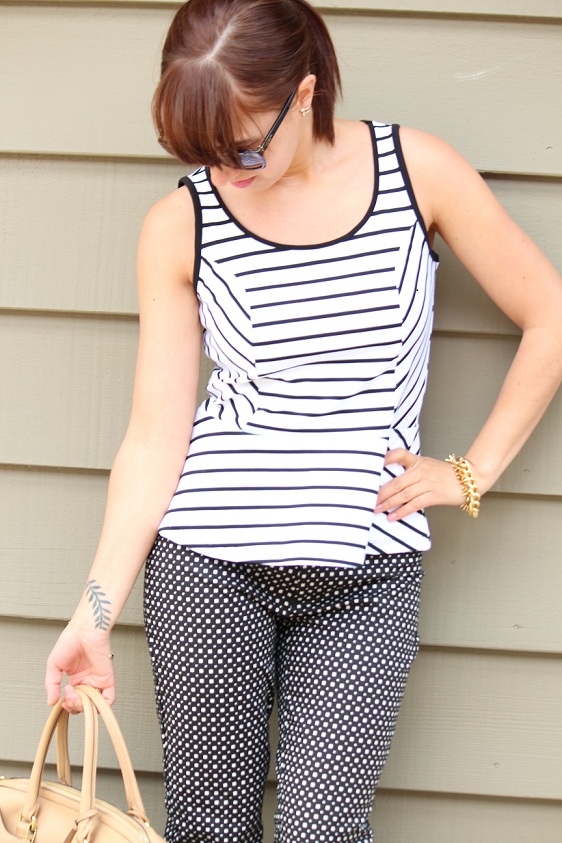 As mentioned in my last blog post I have been really into patterned pants lately. And what better way to show off patterned pants than with a patterned top? Mixing patterns can be tricky but if done right it can be visually stimulating. By picking a base color/colors (I did black and white) you can easily tie in patterned pieces effectively. I like to mix a denser pattern in with a more sparse pattern print. I also love anything leopard print - mix that with stripes or polka dots and voila! Stripes and florals is also a great combination. Who am I kidding - stripes is always a great piece to use when mixing patterns as it goes with virtually anything if you stick to the same color family. It's also important to throw in a neutral piece with your outfit - hence my nude shoes and handbag. It helps to break up your outfit and balance it out. Do you have other ideas for mixing patterns? What rules do you go by?